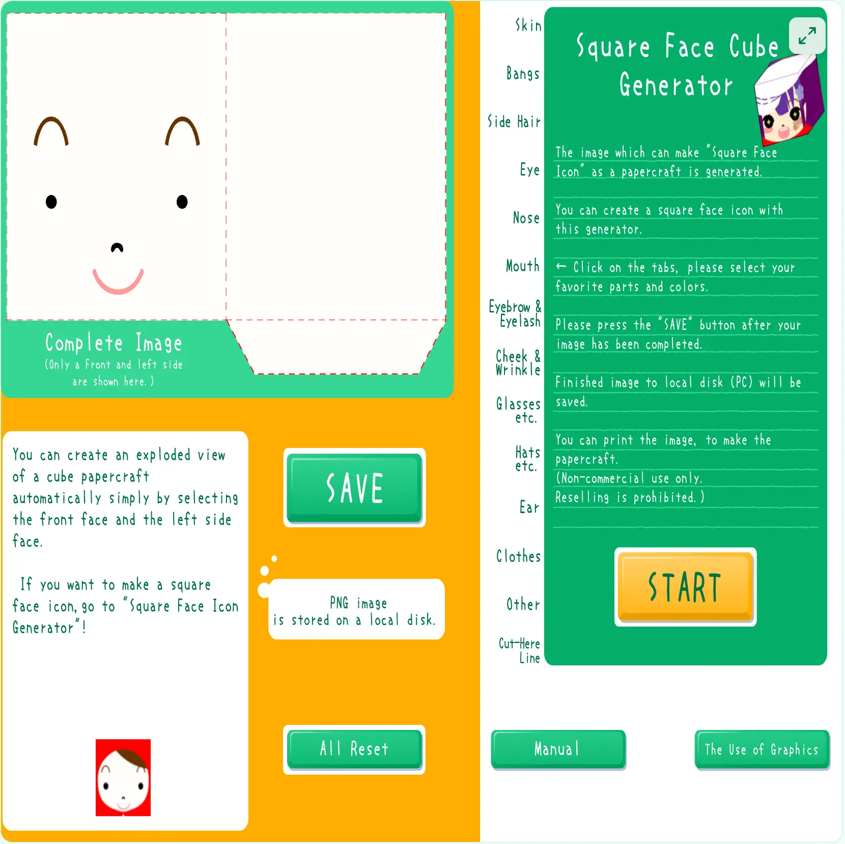 Use our easy editor to design your unique square face character.